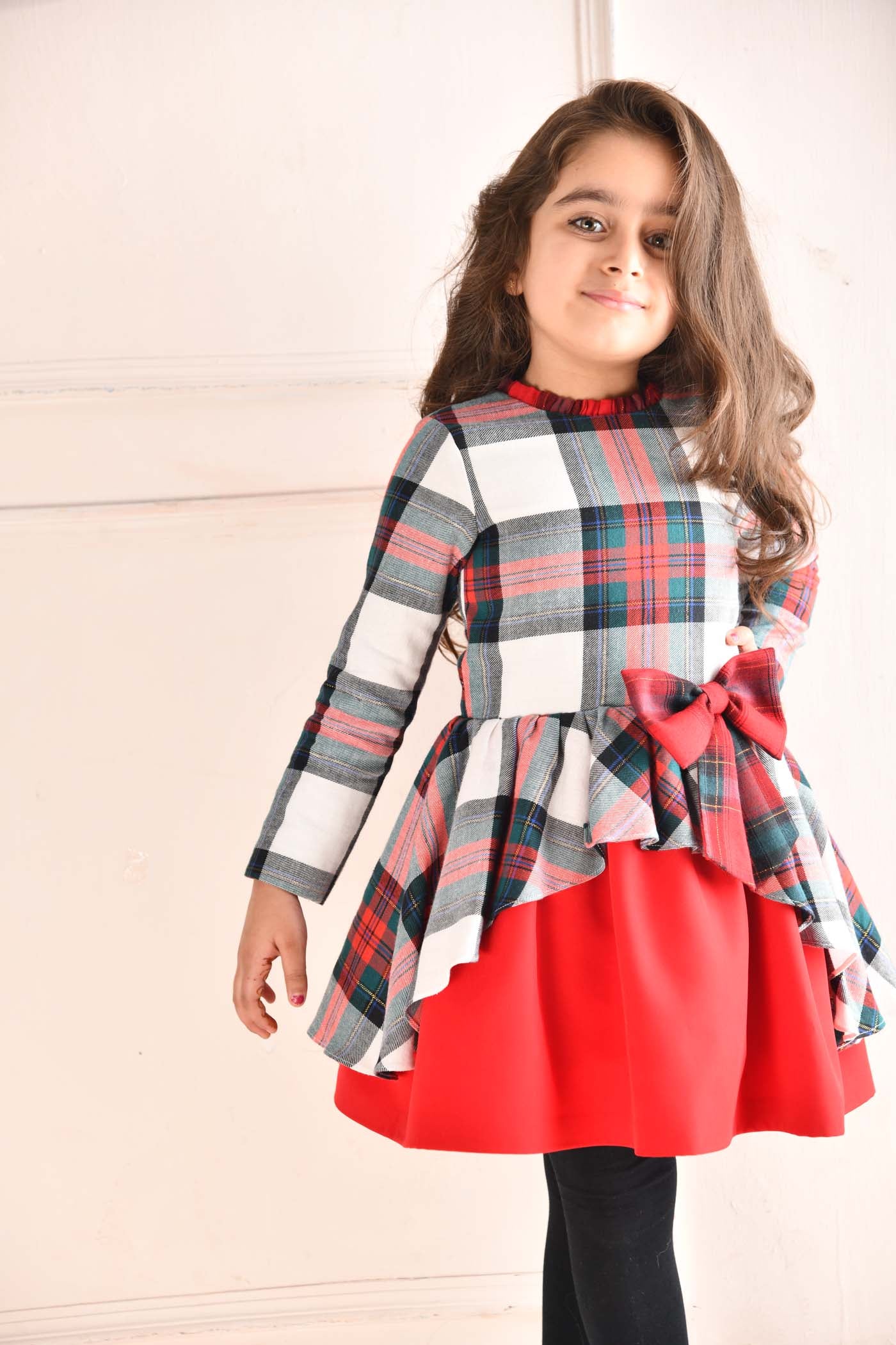 Beautiful ivory lace detailings  Lined with comfortable cotton  Ward off the seasonal chill with our winter delight. Hand crafted in soft , breathable plaid checks with cascade ruffles , finished with a chic rose bow .