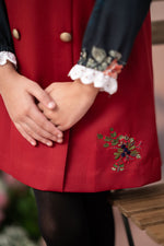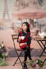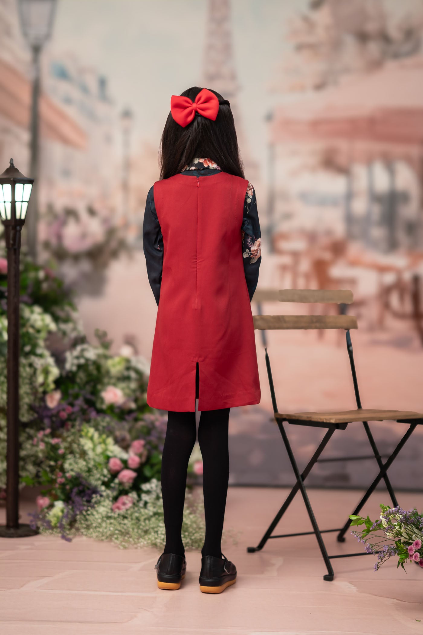 Dress your lil’ darling in the sweetest statement of the season. Berry Belle Joy exudes feminine charm and festive elegance. Crafted in a rich maroon hue and accented with gleaming golden buttons, it beautifully contrasts with a full-sleeved emerald green floral top that instantly catches the eye. The look is completed with a delicate front bow, adding just the right touch of joy. Perfect for celebrations, cozy gatherings, and every moment worth remembering [ ] Long back enclosure for ease of wear