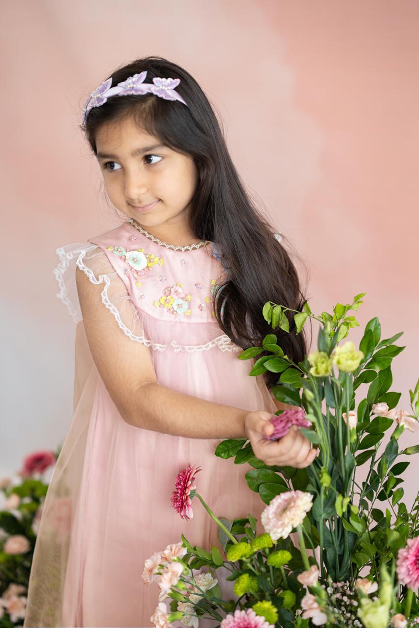 Say hello to ‘Dreamy Wings’, a fairy-kissed addition to our collection. Intricately hand-embroidered flowers bloom across the delicate yoke, while layers of soft blue tulle and ivory lace float like whispers of a dream. Light, luxurious, and oh-so-magical, this dress is the perfect blend of sparkle, comfort, and whimsy—made for twirls, giggles, and moments that feel straight out of a fairytale.
