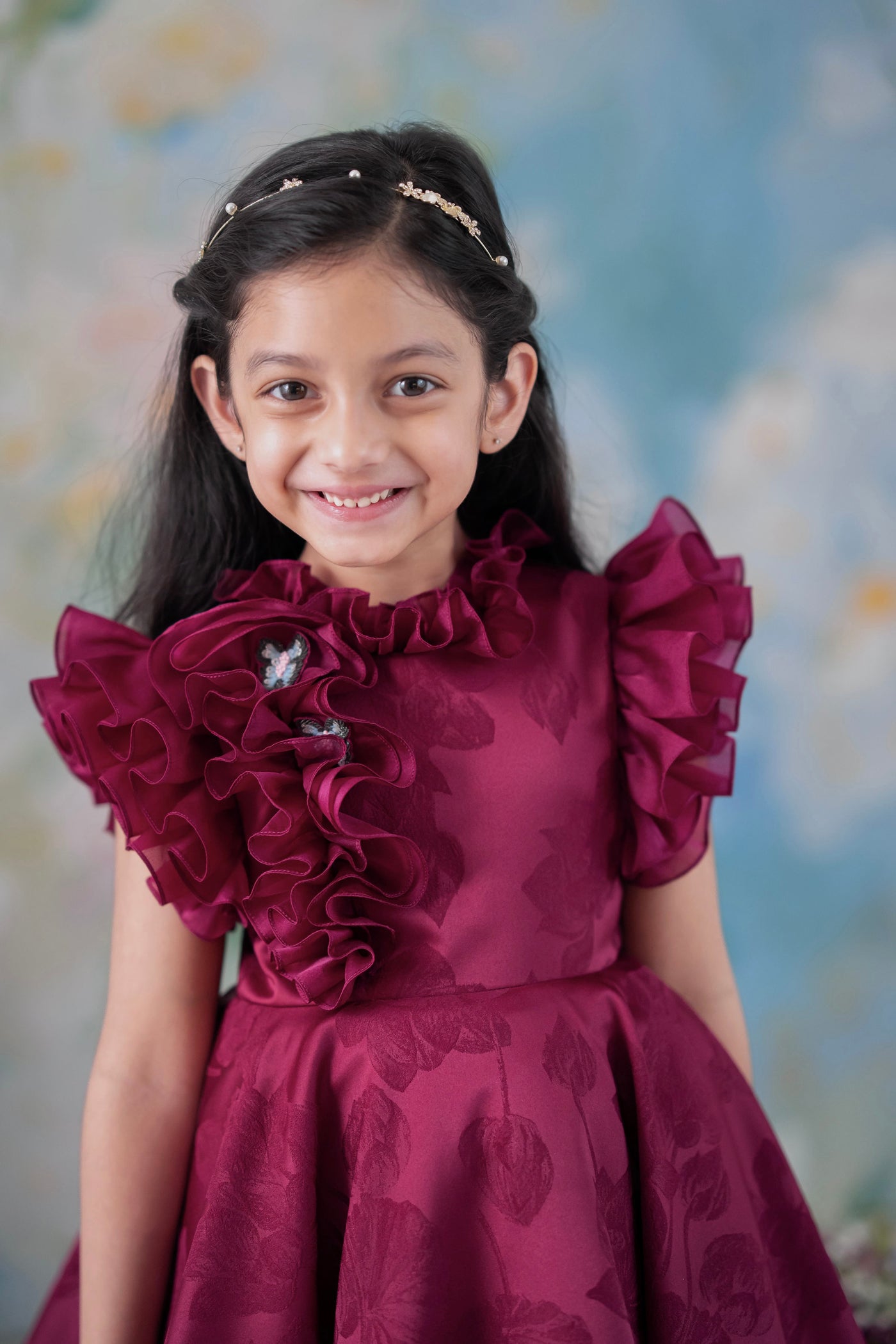 Make a chic statement in our Berry Twirl Dress, where elegance meets playful charm. Crafted from luxurious satin with an embossed floral design, this radiant berry tonnes dress offers a rich texture and a refined finish while remaining soft and breathable for all-day comfort. A cascade of delicate organza ruffles creates a dreamy, twirl-worthy silhouette . Finished with a lightweigt cotton lining for comfort and an easy back closure for fuss-free dressing, the Berry Twirl Dress is perfect for special occasions and magical moments—because little fashionistas deserve nothing less. ❤️