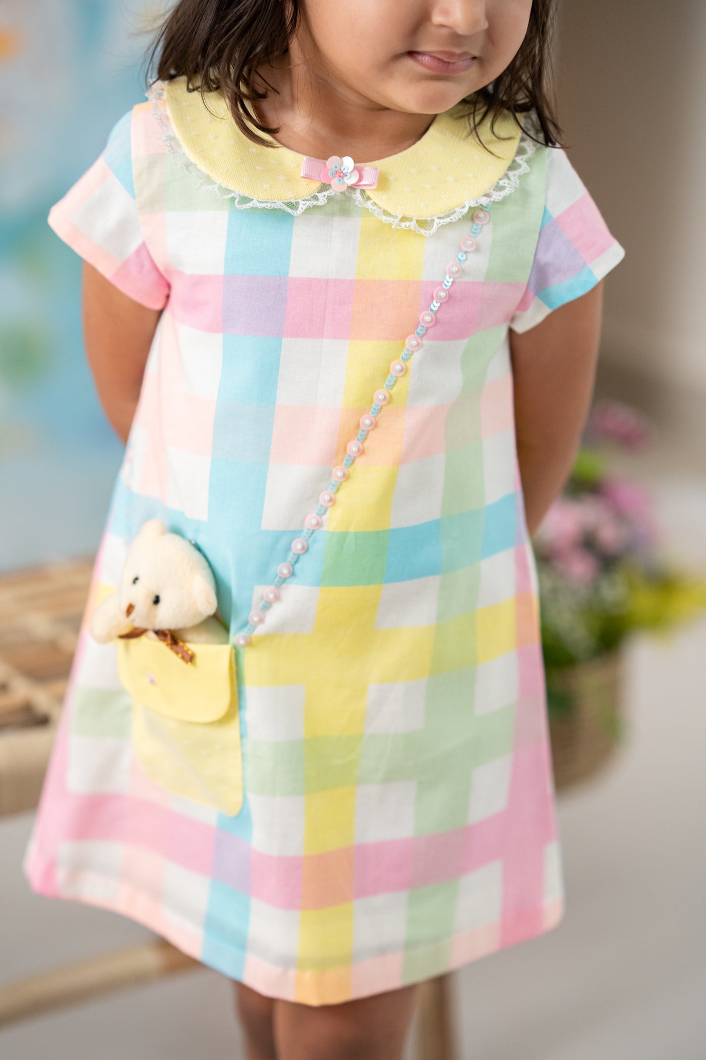 Meet our Teddy Love Dress—a heart-melting favourite designed for little moments of joy. Crafted in soft cotton with a cheerful check pattern, this dress feels light, breathable, and perfect for everyday adventures.